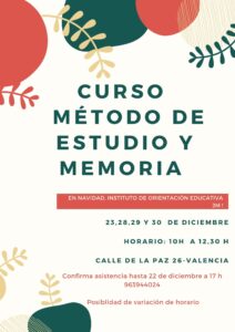 CURSO DE MÉTODO DE ESTUDIO Y MEMORIA EN NAVIDAD